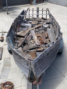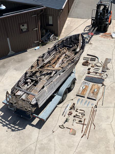 This is a totally documented and complete Ditchburn hull, built as a triple-cockpit runabout sometime around 1930. Previously owned by a boat collector, the hatches and hardware were kept in a barn and remain completely intact, whilst the hull was left beside the barn in the elements. Almost every piece is with the boat including deck planking, windshield, gauge cluster, solid cut-water, rigging, and elevated deck boards confirming the exact model and layout. Pictures show 3 similar finished Ditchburns.