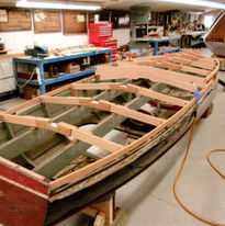 Louie Cares acquired this boat in 2015, and sent it us in 2017 for a new bottom, strip/refinish, and rigging. The original engine was rebuilt, and reinstalled, complete with the original riveted copper oil tank. 'Hellion' was built with an extremely high deck crown to accommodate the engine.
