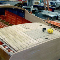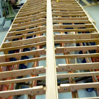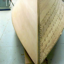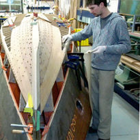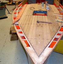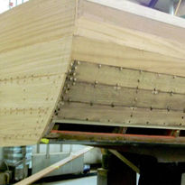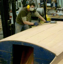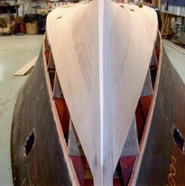 Though she came to Breen in one piece, much of the wood was starting to deteriorate. Lee Anderson decided that since it was the last of the original 33' Baby Gars to be restored it was worth doing right, and preserving as much original wood as possible. Each plank was taken off one at a time, re-inforced with a new layer on the backside, and re-fastened. This 3-year forensic restoration resulted in a masterpiece of preservation.