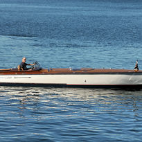 The original hull was brought into the shop, new frames built within, and then the new bottom was installed on those frames. As the sides worked their way down from the chine, the original deteriorated wood was replaced. This, as is all our restorations, was done in accordance with current ACBS Judging policies. All interior cockpit components and firewalls make use of this original wood for non-structural uses. She is once again one of the most stately boats in Muskoka and can often be seen plying the waters.