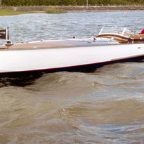 outdated, heavily used boats, they often change hands cheap and are put to work for different uses. The hull was still intact, and the Dart windshield and most of the signature hardware was with it. This forensic restoration, named "Lady Fay", was commissioned from 2015-2017. Entec Racing was also commissioned to hand-build a 572 cu. in., 550 HP power plant.