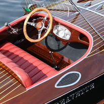 Tom Ballantyne of Reno, Nevada, ordered this boat in 1999. Like many who saw "The Jeffrey", a 1939 20' Greavette Racer which Peter had recently restored, Tom loved the lines and performance of the boat. Lightning is a replica of this boat, scaled slightly larger to 22'.