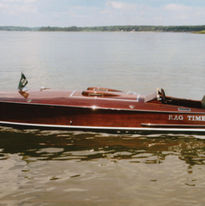 This design is very reminiscent of the early "Gold-Cup" raceboats of the 1920's. A long- sleek front deck and narrow beam make these boats look like sports cars on water. Mr.Rennie has now acquired 'Cash Injection' to