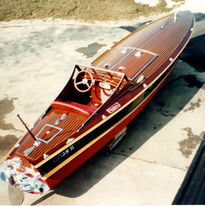 racer was then sold to Lake of Bays in the 1950's. It was here she was found on timbers in an old boathouse in the early 90's by Peter Breen. Richard Grand commissioned her complete over-haul from 1994-1995.